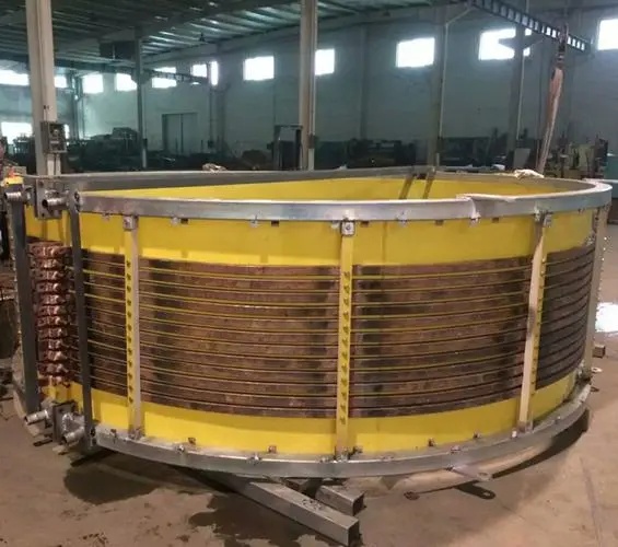 3、感應線圈設計:中頻爐感應線圈的形狀、尺寸和匝數需要與工件的尺寸和形狀匹配,確保電磁場均勻覆蓋工件表面,以獲得均勻的加熱效果。保持線圈與工件之間適當的距離(通常為2-5毫米),過大或過小都會影響加熱效率和均勻性。